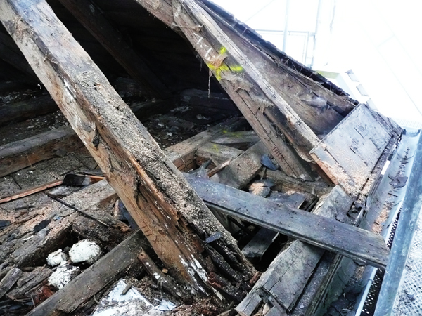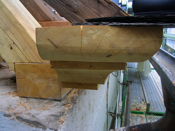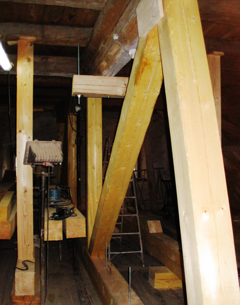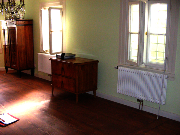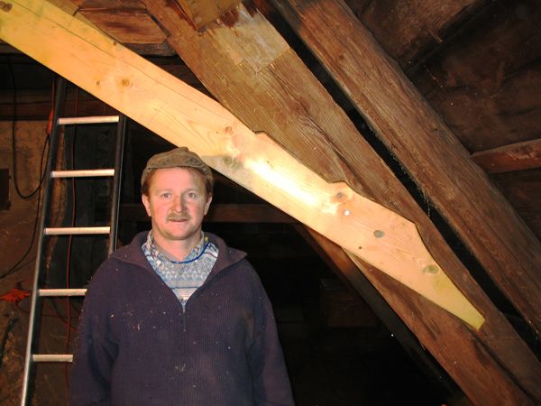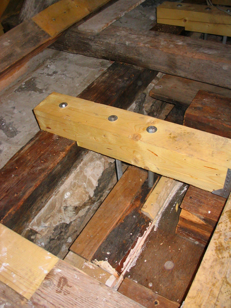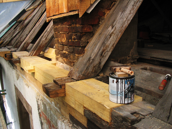 Dachstuhlbereich, - Stabilisierung der Deckenkonstruktionen - Vernadelung Außenwand im Trauf- und Deckenbereich - begleitende Arbeiten wie Stuck, Putz, Parkett, Elektro, Heizung, Schreiner, Fensterläden - Einbau Wandtemperierung EG - Restaurierung historische Tapeten |